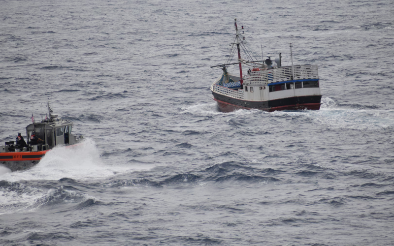 The bust, which took place April 12 in international waters resulted in the detention of five suspected smugglers, who remain in U.S. custody awaiting prosecutorial action. The interdiction occurred approximately 1,265 miles west of Las Palmas, Canary Islands.