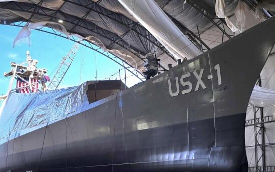 The prototype vessel for the No Manning Required Ship (NOMARS) program, USX-1 Defiant, has been launched and is undergoing sea trials. The 180’, 240-metric-ton unmanned surface vessel (USV) was built at Nichols Brothers Boat Builders, Freeland, Wash., and completed construction February 2025. The vessel is designed to operate autonomously for extended periods without an onboard crew.