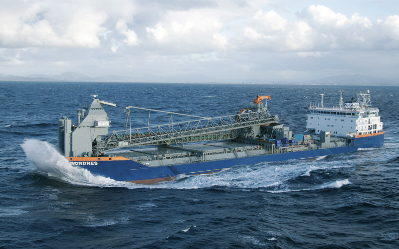 In a March 24 notice to mariners, Equinor said Netherlands-based contractor Van Oord would begin subsea rock installation on seabed sites around planned turbine locations to provide stable bases and protection against erosion. The work will be conducted with the Nordnes, a Netherlands-flagged 547’x86’ flexible fallpipe bulk carrier with a capacity of 24,000 metric tons.